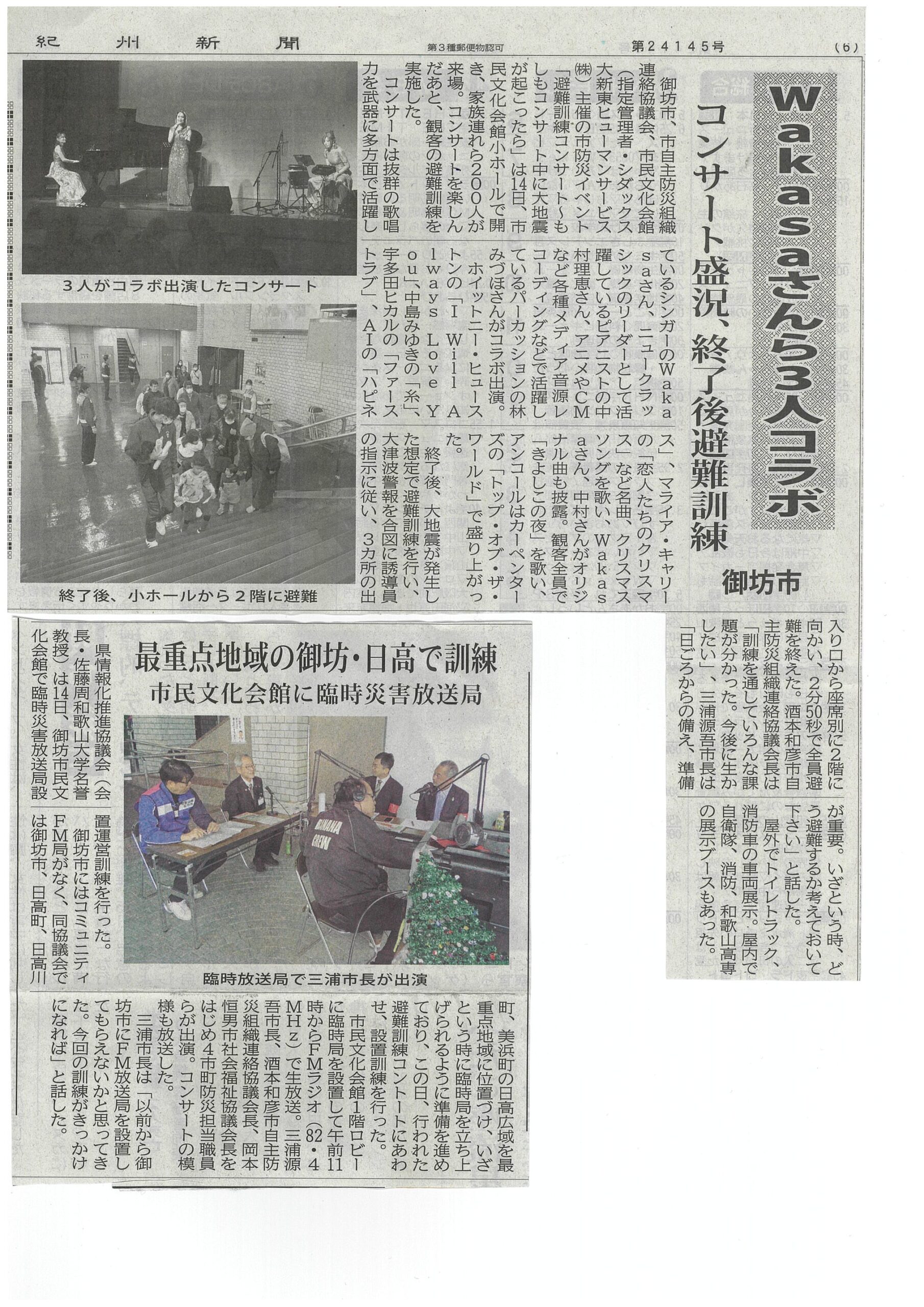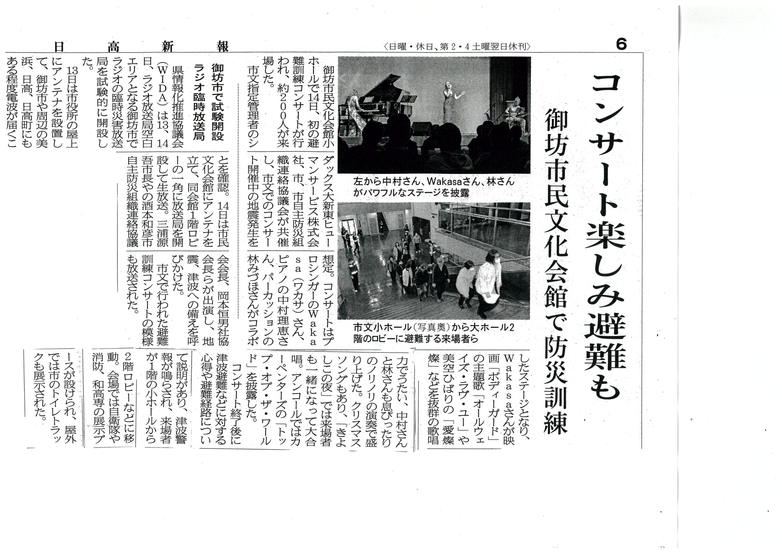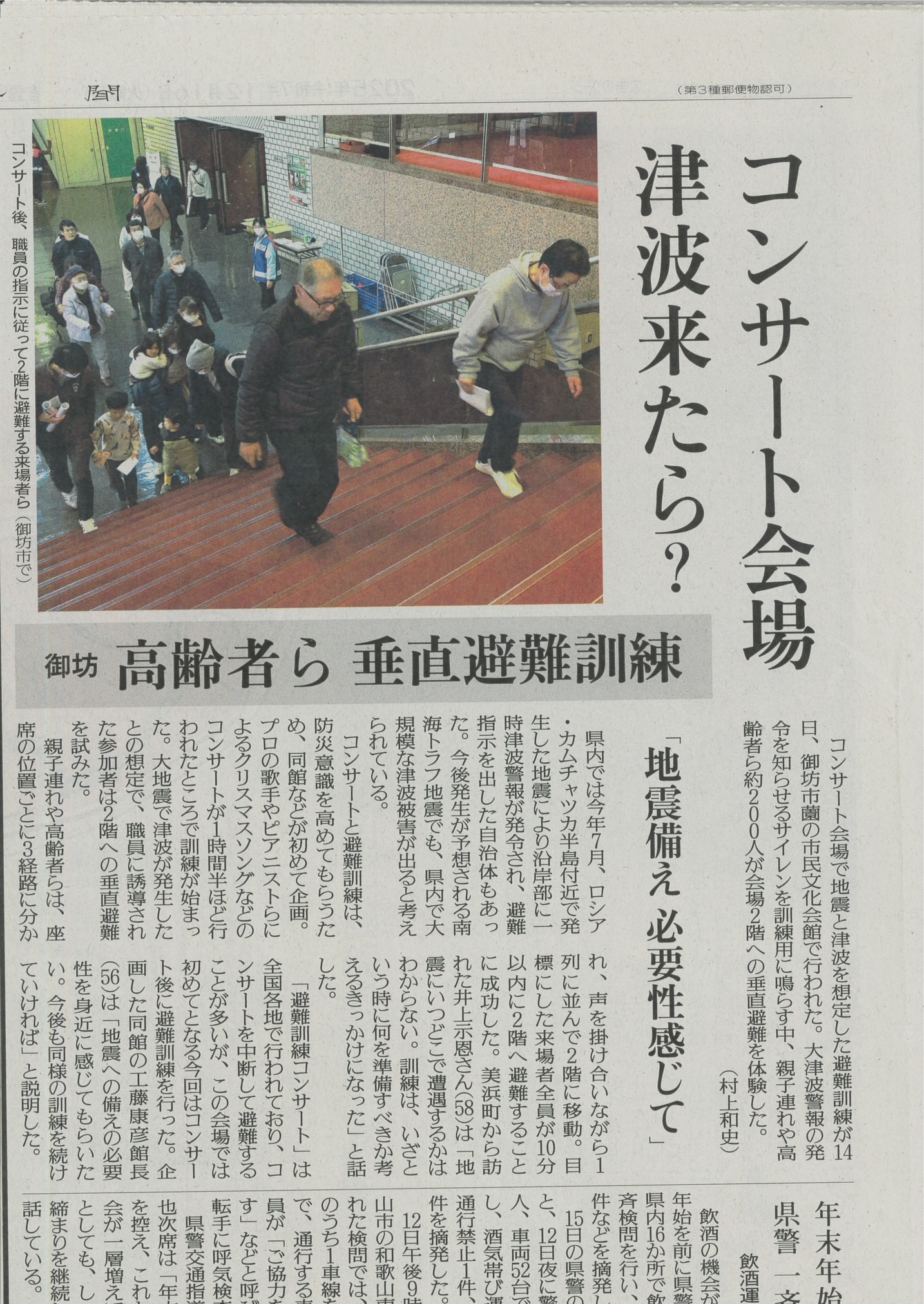 「避難訓練コンサート」を初開催―新聞で紹介されました!